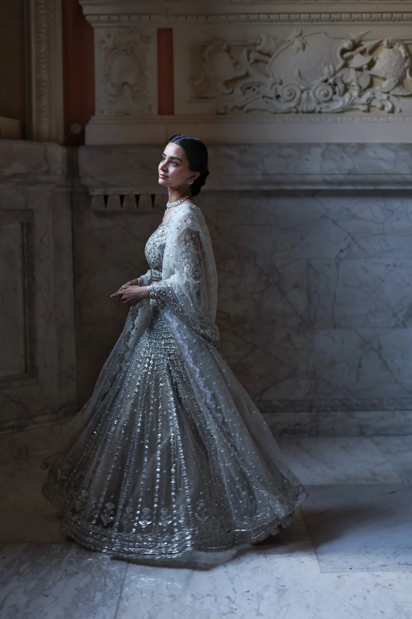 “However, it’s her use of mixing different embroidery styles such as kamdani, resham, gota and dabka which is what I find most extraordinary and impressive.”